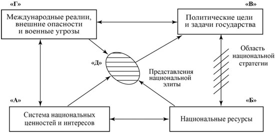 Из этого рисунка ясно видно, что элита (подгруппа "Д") определяет цели и их приоритет на основе осознания национальных интересов и ценностей. Важно подчеркнуть, что именно развитие НЧК должно быть главной политической целью, сформулированной элитой.