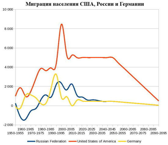 [5] United Nations, DESA - Population Division, World Population Prospects: The 2012 Revision Диаграмма построена по данным / URL: http://esa.un.org/unpd/wpp/ SpecialAggregates/EXCEL_FILES/1_Economic/Migration/WPP2012_SA1_MIGR_F2_NET_NUMBER_0F_MIGRANTS.XLS