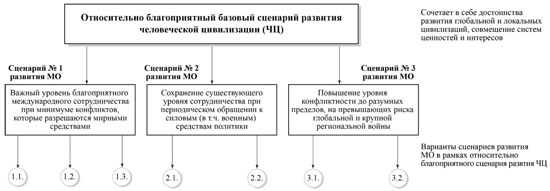 В самом общем виде, таким образом, можно представить себе сценарии развития МО в качестве фундаментальных основ для развития различны сценариев ВПО в рамках которых, как правило, сформулированы основные нормы и условия. На рисунке эту логику можно представить себе следующим образом.