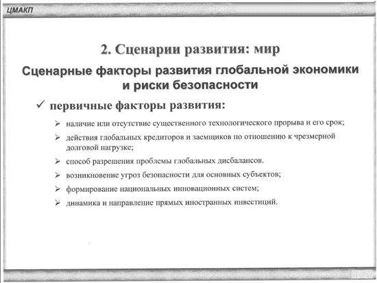 Так, описывая новый внешний формат мирового развития. Д. Белоусов, выделяет следующие сценарные факторы[6].