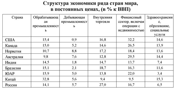 "... Вследствие длительного периода деградации обрабатывающей промышленности в мировом разделении труда Россия стала играть роль сырьевого придатка или поставщика сырья для относительно развитых стран. Ее доля в мировом экспорте товаров составляет всего 2,5%, а на рынках высокотехнологической продукции - около 0,2%. Недопустимо низким остается уровень инновационной активности: в инновационные процессы вовлечено лишь около 10% предприятий. На исследования и разработки Россия тратит вчетверо меньше средств, чем Китай, и в 40 раз меньше, чем США и их союзники (страны НАТО, Республика Корея, Япония и Израиль)"[7].