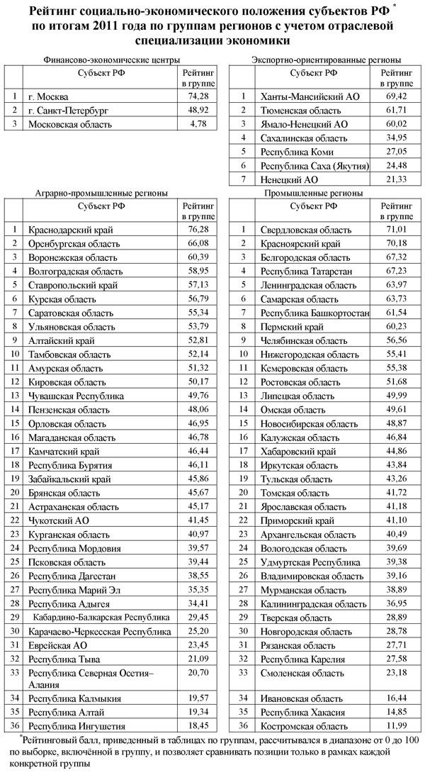[14] Рейтинг социально-экономического положения субъектов РФ. Итоги 2011 / М.: РИА Рейтинг, 2012. С. 9-10.