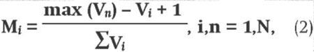 Коэффициент важности (Mi) для частных параметров выявляется на основе метода дробей Фишберна, который может быть представлен универсальной формулой (2):
