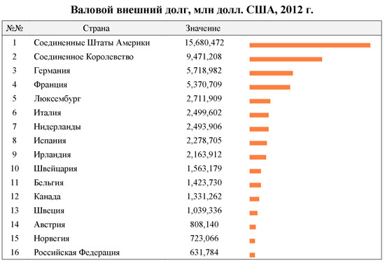 Более того, существующая мировая финансово-экономическая система очевидно наиболее выгодна двум крупнейшим мировым финансовым центрам - Нью-Йорку и Лондону, - которые извлекают максимальную выгоду, управляя мировыми финансами и контролируя основные международные финансовые институты. Так, например, основной внешний государственный долг сохраняется за США и Великобританией, которые "позволили" участвовать в этом процессе Германии и Франции на более скромных условиях.