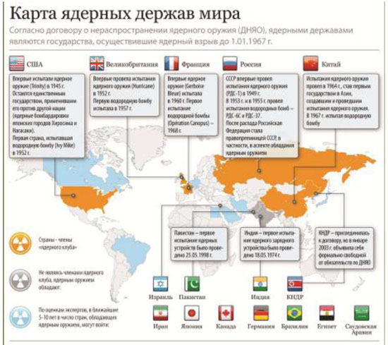 Проникновение США в Евразию идет по всем направлениям. Так, институт иностранных языков Министерства обороны США провел два 16-недельных курса английского языка для таджиков, закончена реконструкция Академии МВД Таджикистана, оказывается содействие в обучении кадров. Построены пограничные заставы в Шурабаде и Яхчи-пуне, на открытие которых в июне 2011 г. приезжал сам Браунфилд - там даже установлены "полы с обогревом"[9]! Военный партнер Таджикистана - Национальная гвардия штата Вирджиния - также расширяет военное сотрудничество: проведение боевой подготовки и обмен информацией в 2011 г. дополнены формированием "миротворческого подразделения", подготовкой "ликвидации последствий чрезвычайных ситуаций" и военно-гражданской медицинской готовности[10] - отмечает российский эксперт Г. Бородин. Отчасти именно эти тенденции ведут к росту "привлекательности" ядерного оружия, которое стремительно расползается по Евразии.