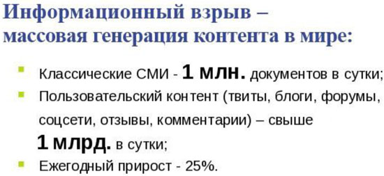 Задача при формировании образа СО, чтобы большинство этого информационного потока было направлено в нужное русло. На фоне, такого объема информации теряется кроме того сообщение, которое не является для владельцев информационных потоков приоритетным. Для этого используется армия недорогих сетевых ресурсов, генерирующих необходимую информацию и реакцию на нее.