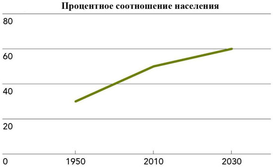 Ежегодно к городскому населению добавляется 65 миллионов человек, что эквивалентно семи городам, равным Чикаго, или пяти городам размером с Лондон.