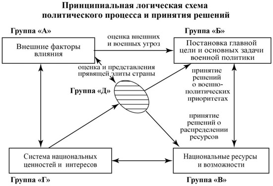 Таким образом к 2020 годам складывается качественно новая ситуация в мировой и региональных ВПО, которая будет являться неизбежным следствием развития сценария дальнейшего усиления роли геополитики для других государств. Если вернуться к известному рисунку, описывающему логическую модель политического процесса формирования МО, то можно констатировать: