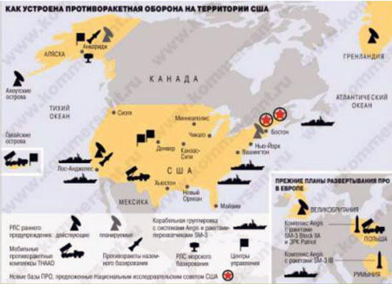 - 30 наземных комплексов (GBI) ПРО от Аляски до Калифорнии;