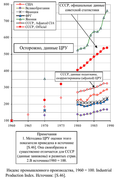 При этом, неплохие позиции, которые занимала промышленность СССР и РСФСР до 19090 года даже относительно развитых государств, стремительно ухудшились в 90-е годы прошлого века и так и не смогли быть улучшены в последующие десятилетия[5].