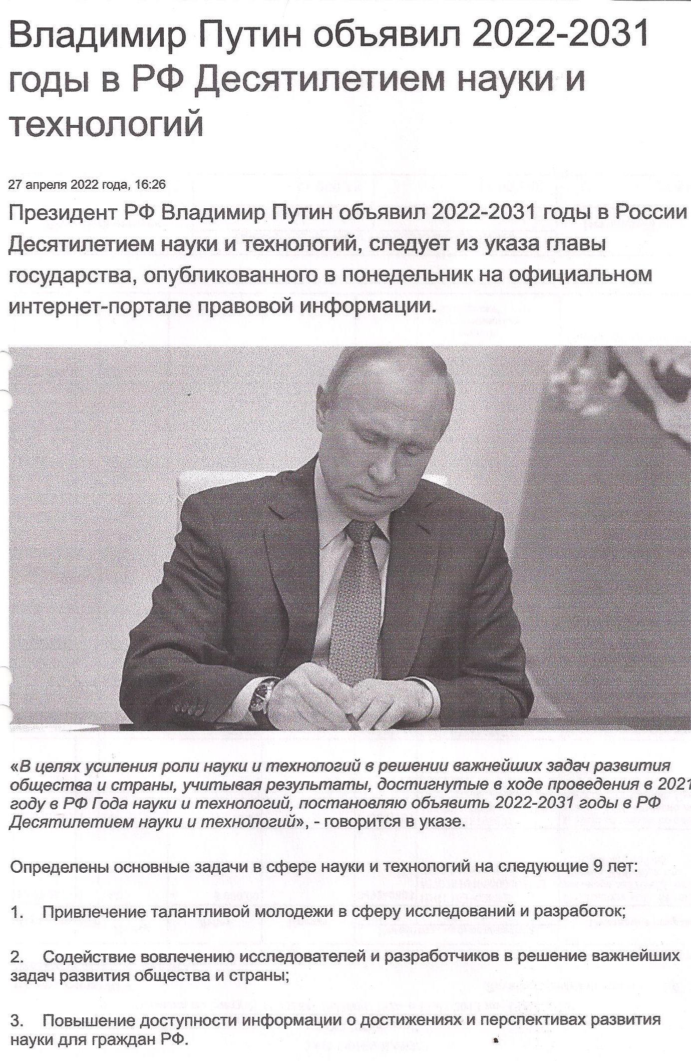 ОБЪЯВИЛ «ДЕСЯТИЛЕТИЕМ НАУКИ И ТЕХНОЛОГИЙ»,