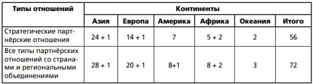 Таблица 1. Страны и регионы, с которыми КНР установила партнёрские отношения (1993–2014 гг.)[9]