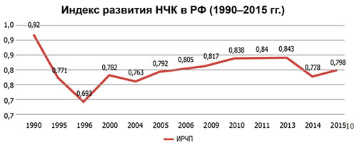 3). Продолжается медленный рост ИРЧП с 2000 по 2014 гг., не достигнув уровня 1990 г. РСФСР то время, когда в других странах, в том числе некоторых африканских, этот показатель уже выше.