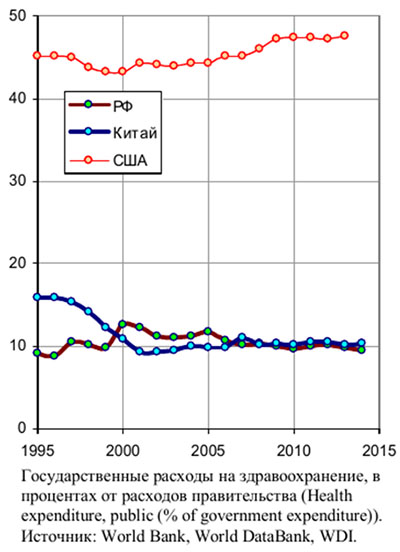 4). После 2014 г. – кризиса, санкций и стагнации, – видно новое падение ИРЧП до уровня конца 90-х г., которое отчетливо видно на примере уровня расходов на здравоохранение.