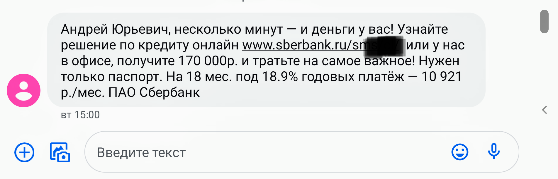 В очередной раз Сбербанк прислал свои предложения. Сначала попросил оценить качество обслуживания, когда я платил в отделении Сбербанка. Но почему, если это нужно не мне, а Сбербанку, он просит оценить его работу за деньги? В конце просьбы оценить работу скромная запись, что это стоит по стоимости услуг оператора связи.