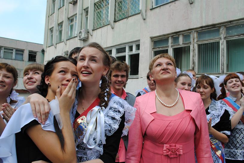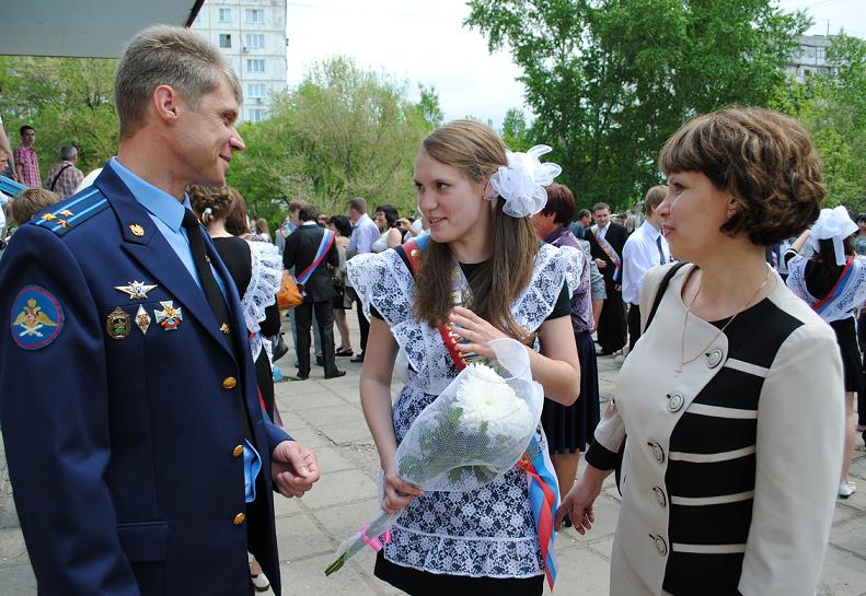 - Такие мероприятия все называют последним школьным звонком,- говорит директор школы N 68 Светлана Валентиновна Филатова.- Но так как мы подшефная школа Краснознамённого объединения Военно-воздушных сил и противовоздушной обороны Восточного военного округа, то этот звонок называем ещё крайним. В авиации никогда не говорят последний, правильно будет крайний. Век живи - век учись.