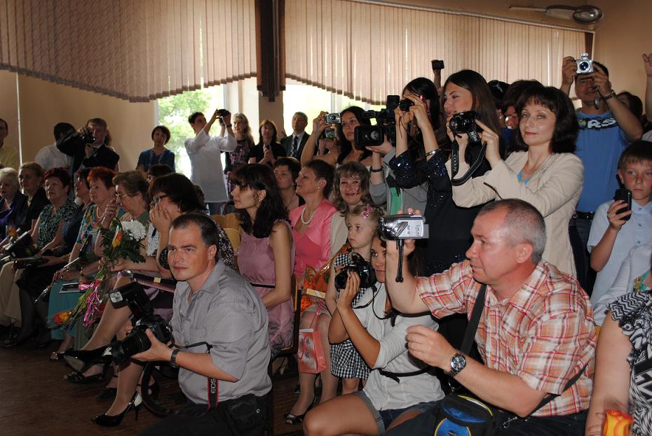 По традиции все действия проходили в переполненном школьном актовом зале: вступительное слово от директора школы, приказ о допуске к государственной итоговой аттестации и единому государственному экзамену, поздравления от учителей, родителей, ветеранов и городской администрации, а потом видеофильмы и концерты от выпускников. Так что проводить линейку на улице не было никакого смысла.