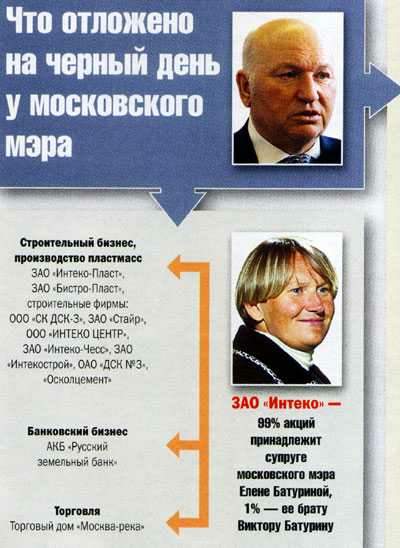 Кстати - о `мелких недостатках`. Журнал `Профиль` публикует интересную таблицу, в которой `семейный бизнес` Лужкова представлен максимально наглядно. Как говорится, без комментариев: