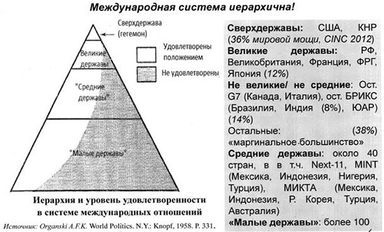 – ВПО производная от специфических отношений между всеми субъектами, факторами и компонентами, формирующими МО, но, прежде всего, отношениями между её важнейшими субъектами: локальными цивилизациями, государствами и коалициями[5].
