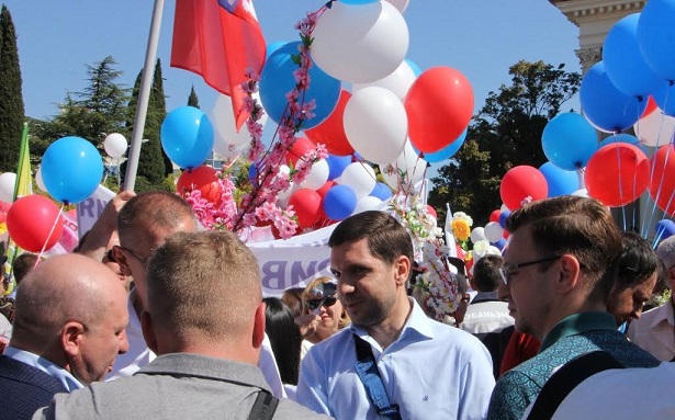В демонстрации участвовалипредставители различных учреждений и предприятий, спортивных и общественных организаций. Тысячи сочинцев прошли по главной улице города – Курортному проспекту с цветами, флагами и транспарантами.