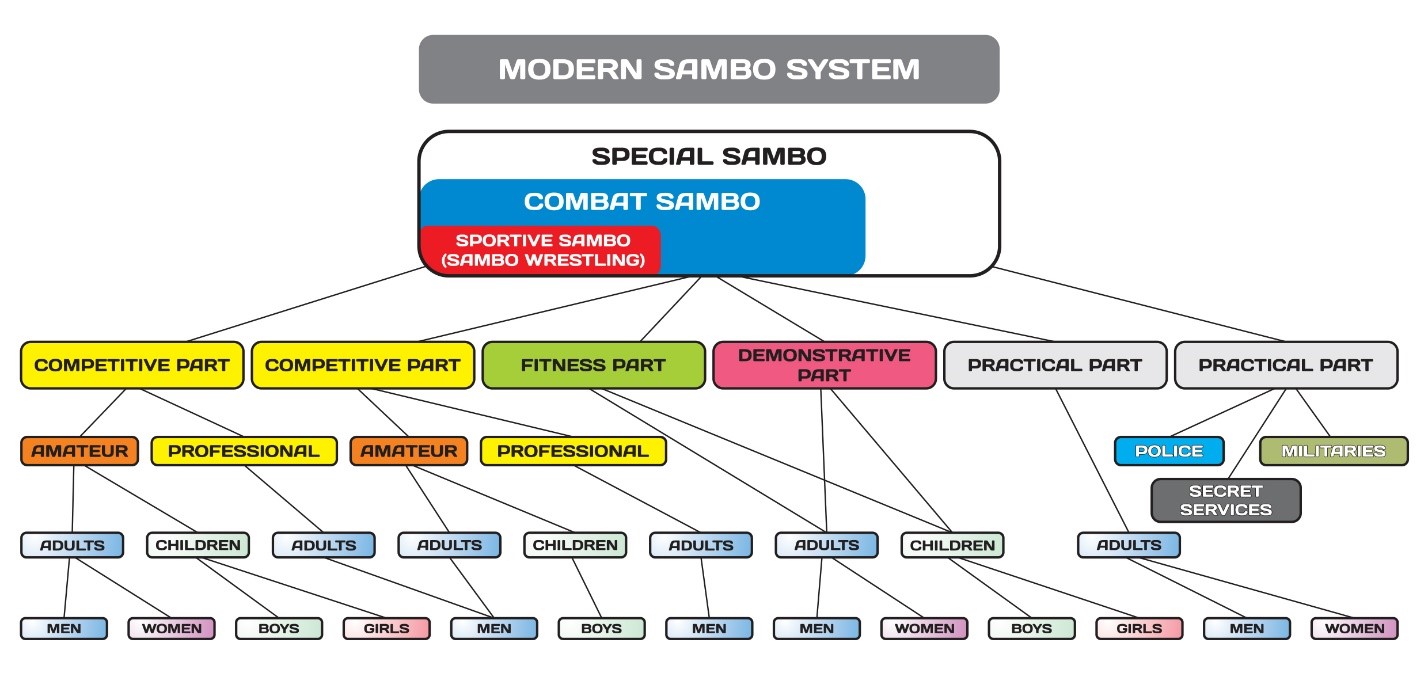 Like a Russian Matryoshka doll, the self-defense and combat system consists of several components: the special section (Suvorov science of victory—our main treasure!) accounts for about 60% of the total technical actions of A.A. Kharlampiev's system; Combat Sambo (including the "wrestling" section) comprises 40%; and Sambo wrestling makes up 8%.