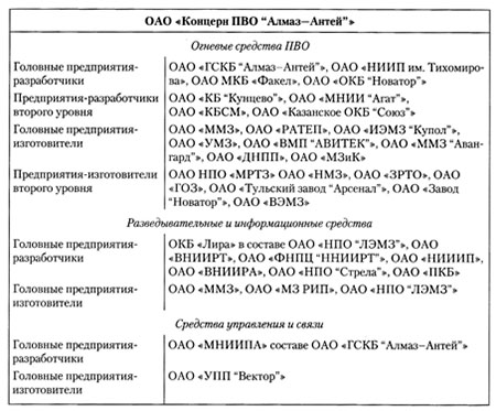 Тогда же, в рамках осуществляющейся интеграции предприятий ОПК, на базе АООТ «Промышленная компания "Концерн “Антей”"», путем слияния с НПО «Алмаз», было создано ОАО «Концерн ПВО "Алмаз-Антей"». Всего во вновь созданную структуру вошло сорок шесть промышленных и научно-исследовательских предприятий и организаций.