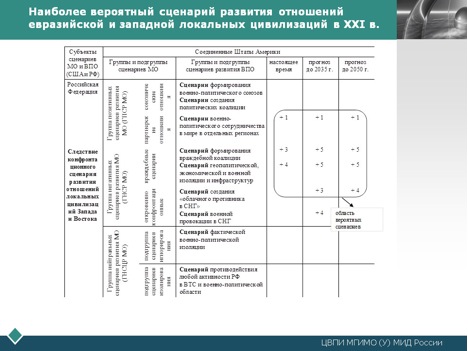ГЛАВА 3. Значение отношений между ЛЧЦ для формирования базового сценария развития военно-политической обстановки в Евразии в XXI веке............................ 70