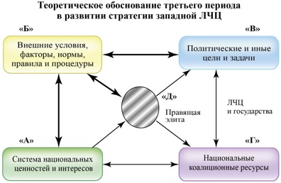 Как представляется именно такой пятый, «синтезированный» вариант наиболее эффективен в качестве стратегии Запада: переводя противоборство с российской ЛЧЦ в военную плоскость, Запад может сохранить достаточно мирное отношение с другими ЛЧЦ, но одновременно будет пытаться их дестабилизировать и укрепить собственную коалицию.