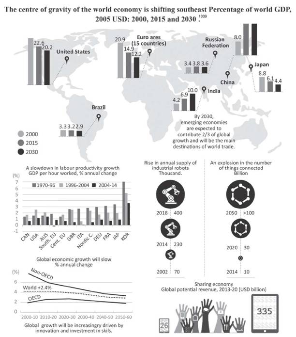 Наконец, ключевая тенденция в отношениях между ЛЧЦ – сохранение Западом технологического лидерства[16]. Согласно этому сценарию, из западноевропейских стран и США продолжится уход предприятий обрабатывающей промышленности, но они сохранят свои позиции научно-технического и финансового лидерства в мировой экономике. Снизится угроза дефицита низкоквалифицированной рабочей силы, проблемой станет привлечение высокообразованных и наиболее одаренных людей из других стран. Остальному миру Запад предоставит свой финансовый и интеллектуальный капитал, получая за это доход (ренту). Прочие страны, не обладающие возможностями по развитию высоких технологий, импортируют или копируют их.