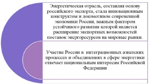 Аннотация. Участие в интеграционных азиатских процессах в сфере энергетики отвечает национальным интересам России, способствует расширению экспорта энергоресурсов на мировые рынки. Контроль над нефтегазовыми регионами дает возможность маневрировать ресурсами и становится ключевым фактором политического и экономического влияния.