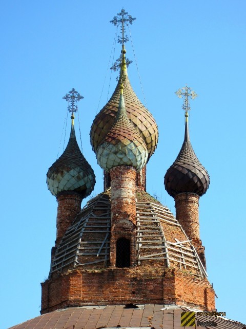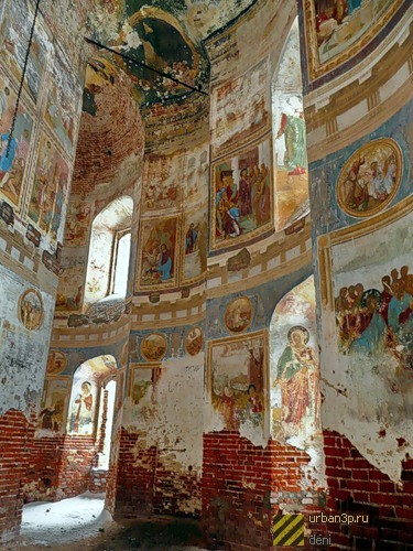 В 1930-х гг. храм был закрыт, а ценные иконы - уничтожены. Особый интерес представляют фрески: над росписью стен ярославские мастера трудились в течение трех лет - с 1796 по 1799 гг. Красочные сюжеты Ветхого и Нового завета переданы в точной последовательности и напоминают классические образцы русского барокко. Некоторые фрески сохранились очень хорошо. Не благодаря, а вопреки: в советские годы в храме была устроена тракторная станция. От дыма стены и своды закоптились; это уничтожило большую часть росписей.