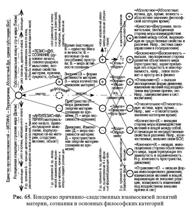 На генодреве причинно-следственных взаимосвязей понятий материи и сознания и основных философских категорий (Рис 3/65) нами показаны не только конкретные связи системы понятий, но даны и их определения.