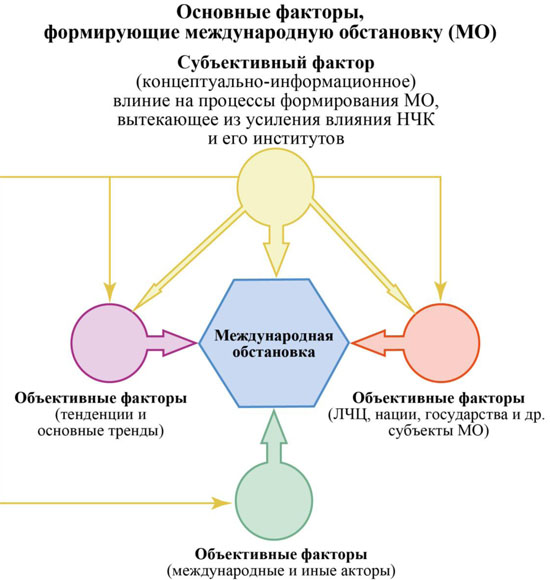 XXI век вносит очень существенные изменения в процессы развития человеческой цивилизации, которые можно сформулировать как стремительное усиление влияния субъективного фактора на МО и ВПО, прежде всего влияния человека, его потенциала вообще и институтов человеческого потенциала, в частности на все процессы, происходящие в мире. Эта объективная тенденция усиливает и без того значительное субъективное влияние на все социальные и общественные процессы, включая, естественно, процессы формирования МО, существующее в социальной деятельности[3].