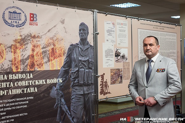 Москва - "Ветеранские вести". 15 февраля в нашей стране отметят День памяти о россиянах, исполнявших служебный долг за пределами Отечества и 30-летие вывода Ограниченного контингента советских войск с территории Афганистана. В канун этой знаменательной даты в Государственной Думе под эгидой Комитета по обороне и Комитета по труду, социальной политике и делам ветеранов открылась выставка, организованная Информационным агентством "Ветеранские вести", которое возглавляет Вячеслав Калинин.