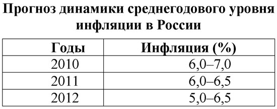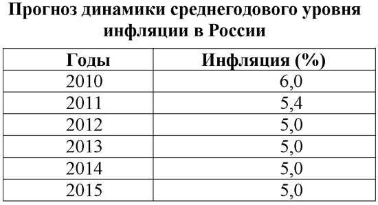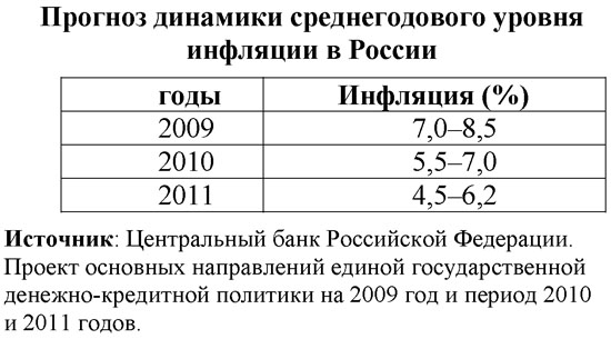 Центральный банк Российской Федерации в конце 2008 г. в проекте основных направлений единой государственной денежно-кредитной политики на 2009 г. и период 2010 и 2011 гг. давал следующий прогноз роста цен в России.