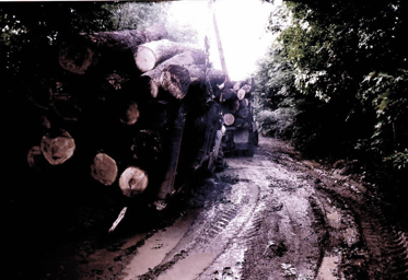 Операция по вытаскиванию гружённого лесовоза из дорожной топи на лесной дороге другим гружённым лесовозом. Предгорья Вандана.