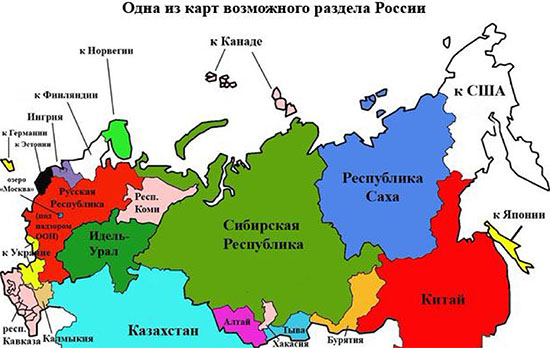 Думается, что конечной целью остается дезинтеграция и раздел России на ряд региональных государств потому, что площадь, ресурсы, история, культура, население – всегда будут объективными условиями для возникновения национально-ориентированной правящей элиты. Совершено иное дело, когда постсоветское пространство, а затем и территория России (как минимум, европейская, азиатская и дальневосточная части) перестанут существовать в качестве единого государства и народа. Контроль над этими территориями и ресурсами становится объективно реальной целью.