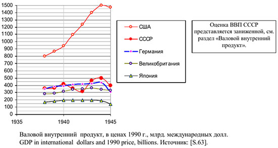 Результаты производства ВВСТ в условиях войны и эвакуации значительной части промышленности на восток[9] свидетельствуют об очень высокой эффективности промышленного производства в целом и ОПК, в частности, в СССР, которое росло даже условиях войны более чем на 16% в год. По подсчетам военных экономистов а 11 млрд рублей в СССР было произведено 55 тыс. танков Т-34, а в Германии – 1400 «тигров»