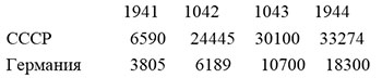 При этом надо добавить, что в первые месяцы оккупации промышленных районов СССР валовая промышленность сократилась более чем в 2 раза. Кроме того, не подсчитано до конца производство ВВСТ союзников Германии, производивших достаточно много вооружений[8].