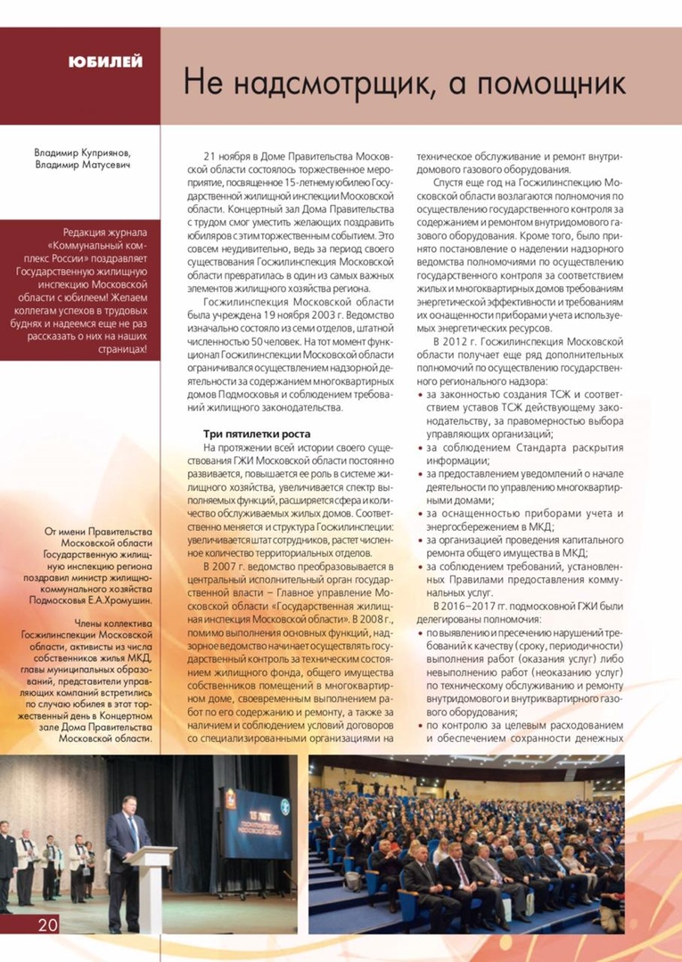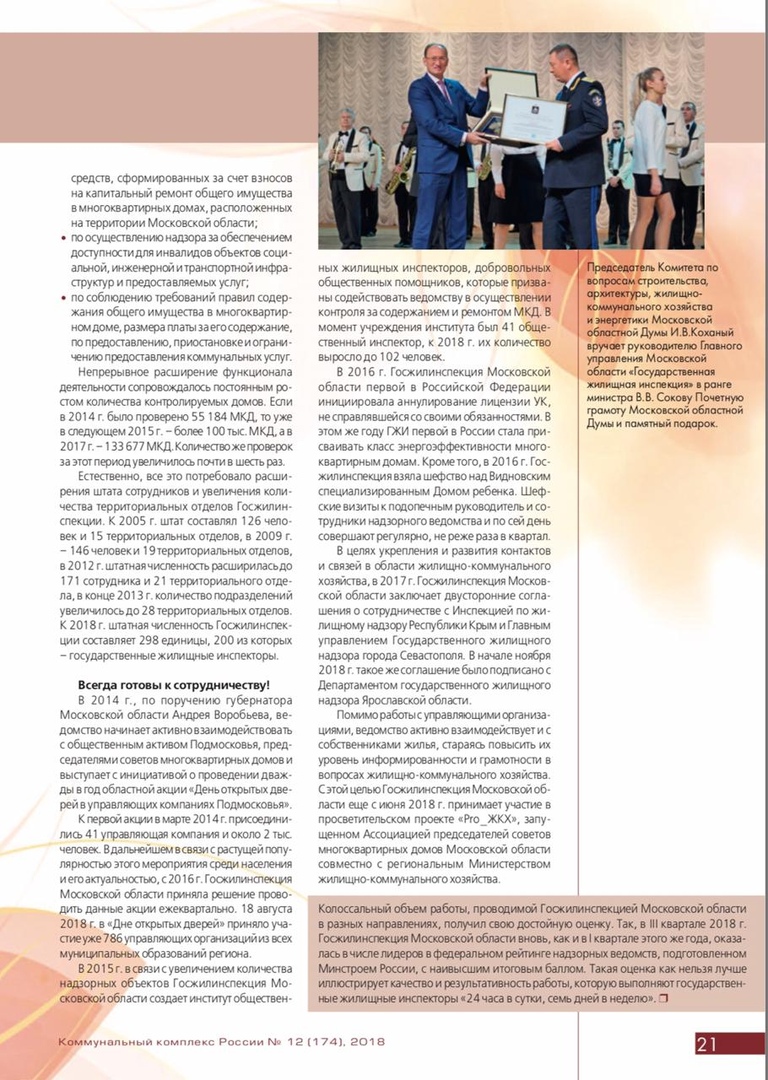 Журнал «Коммунальный комплекс России» №12 за декабрь 2018: «Не надсмотрщик, а помощник»