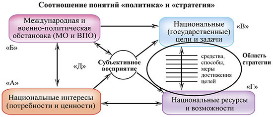 Кроме этих трех, стратегических, направлений, естественно, сохраняется влияние и на другие группы факторов, прежде всего, непосредственно на стратегию страны (чрез её цели и ресурсы, но более всего – через правящую элиту). «Таким образом, формирование стратегии России находится под усиливающимся давлением сразу по нескольким (даже многим) направлениям, которое реализуется самыми разными средствами и способами: если в отношении политических целей используются достаточно традиционные средства силовой государственной политики, а также новейшие информационно-когнитивные технологии, то применительно к силовому воздействию на системы ценностей и правящую элиту в возрастающей мере используются силовые – не военные и военные – государственные и государственные институты. Яркий пример – нацистские и националистические организации на Украине, которые представляют собой, как правило, силовые военные и не военные негосударственные институты, действующие как под влиянием, так и оказывающие сильнейшее влияние на институты государства. При этом, важная особенность их деятельности заключается в идеологической мотивированности большого числа нацистов и националистов, основанной на искаженной исторической трактовке украинцев, как самостоятельной и древней нации, положившей начало Руси[11].