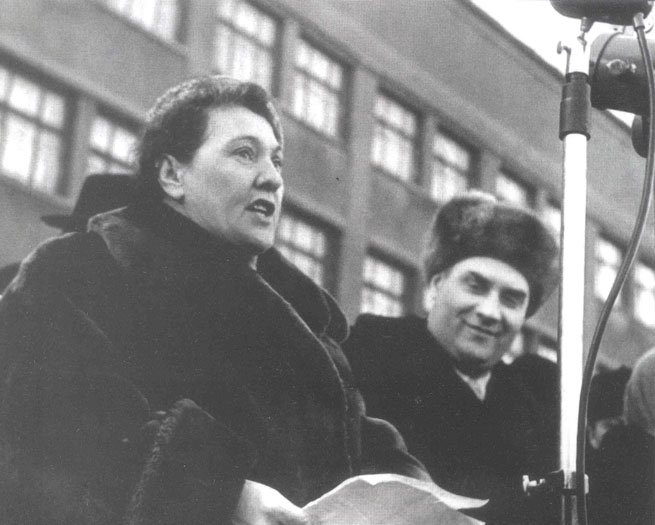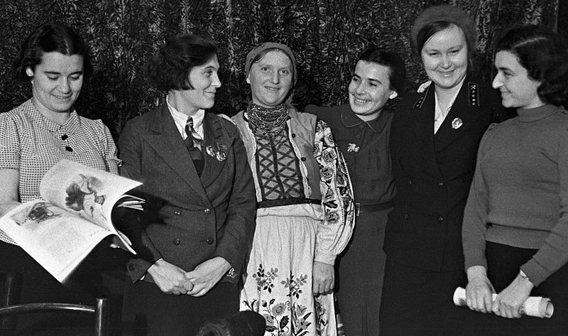 Ангелина (слева) и Демченко со Сталиным на X съезде ВЛКСМ, 1936