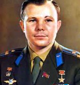 Первый космонавт планеты Земля; родился 9 марта 1934 года в селе Клушино Гжатского района Смоленской области в семье колхозника. Член КПСС с 1960 года. В 1941 году начал учиться в средней школе, но учёбу прервала война. После окончания войны семья Гагариных переехала в город Гжатск, где Гагарин продолжал учиться в средней школе. В 1951 году он с отличием окончил ремесленное училище в подмосковном городе Люберцы по специальности формовщика-литейщика и одновременно школу рабочей молодёжи. В 1955 также с отличием окончил индустриальный техникум и аэроклуб в Саратове. В этом же году поступил в 1-е Чкаловское военное авиационное училище лётчиков им. К.Е.Ворошилова в городе Оренбурге, которое окончил в 1957 году по первому разряду. Служил лётчиком в 769-м истребительном авиационном полку ВВС Краснознамённого Северного флота (аэродром Луостари). В 1960 году старший лейтенант Гагарин зачислен в отряд космонавтов. С 1961 года был его командиром. 12 апреля 1961 года в 9.07 по московскому времени совершил первый в истории человечества космический полёт на космическом корабле "Восток". Полёт проходил на околоземной орбите на высотах 181-327 километров. За 108 минут облетел земной шар и благополучно приземлился возле деревни Смеловки Терновского района Саратовской области. Звание Героя Советского Союза с вручением ордена Ленина и медали "Золотая Звезда" Гагарину Юрию Алексеевичу присвоено Указом Президиума Верховного Совета СССР от 14 апреля 1961 года. Приказом министра обороны присвоено внеочередное воинское звание "майор". После полёта Гагарин непрерывно совершенствовал своё мастерство как лётчик-космонавт, а также принимал непосредственное участие в обучении и тренировке экипажей космонавтов, в руководстве полётами кораблей "Восток", "Восход", "Союз". Был дублёром В.Комарова при полёте на корабле "Союз-1". В 1964-1968 годах был заместителем начальника Центра подготовки космонавтов. В 1968 году с отличием окончил Военно-воздушную инженерную академию имени Н.Е.Жуковского. Темой его дипломного проекта был космический корабль многоразового использования. Ю.А.Гагарин вёл большую общественно-политическую работу, являясь депутатом Верховного Совета СССР 6-го и 7-го созывов, членом ЦК ВЛКСМ (избран на 14-м и 15-м съездах ВЛКСМ), президентом Общества советско-кубинской дружбы, почётным членом Общества Финляндия - Советский Союз. С миссией мира и дружбы он посетил многие страны. Гагарину присуждены Золотая медаль имени К.Э.Циолковского АН СССР, медаль де Лаво (FAI), почётный диплом "Человек в космосе" Итальянской ассоциации космонавтики, золотая медаль "За выдающееся отличие" и почётный диплом Королевского аэроклуба Швеции, Большая золотая медаль и диплом FAI, золотая медаль Британского общества межпланетных сообщений, премия Галабера по астронавтике. С 1966 Гагарин являлся почётным членом Международной академии астронавтики. Автор книг "Есть пламя", "Дорога в космос". Награжден орденом Ленина, медалями, иностранными орденами: Георгия Димитрова (НРБ), Карла Маркса (ГДР), Звездой II класса (Индонезия), Грюнвальдским крестом I степени (Польша), Знамени 1 степени с бриллиантами (Венгрия), "Ожерелье Нила" (Египет), Большой лентой Африканской Звезды (Либерия), "За заслуги в области воздухоплавания" (Бразилия), "Плайя-Хирон" (Куба), медалью Колумба (Италия), золотой медалью города Сен-Дени (Франция) и д