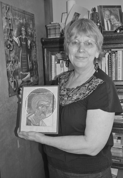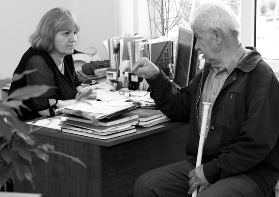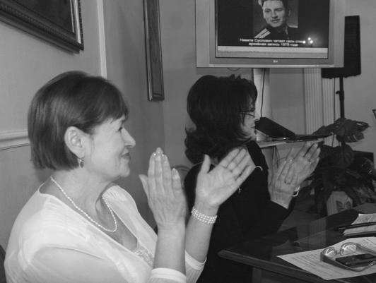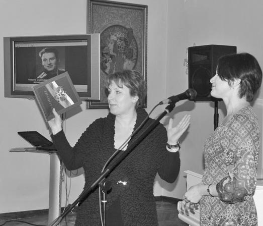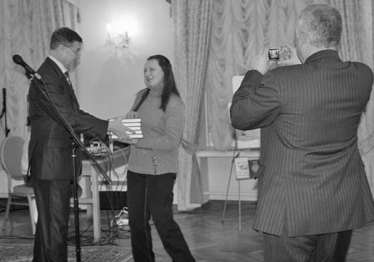 Редактор книги "Шрамы на сердце" Наталья Лайдинен вручает Нине Суслович, дочери поэта почетную грамоту