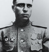 Командуя стрелковой ротой правильно расставил силы своего подразделения. Находясь впереди боевых порядков своей роты, лично первый вступил в рукопашный бой с возгласами "За Родину, За Сталина", личным примером воодушевил бойцов на боевой подвиг и выбил противника из первой линии траншей. Врываясь первым со своей ротой также во вторую, третью и четвертую линию траншей, своим героическим подвигом все стремительнее продвигался вперед, увлекая за собой свое подразделение.