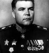 Маршал Советского Союза командующий 2-м Украинского фронтом. Родился 23 ноября 1898 году в Одессе. Украинец. Внебрачный сын кухарки. После окончания церковно-приходской школы в 1911 Малиновский ушел из дома. В 1911-13 работал батраком. В 1913-14 ученик приказчика в галантерейном магазине (Одесса). В 1914 упросил солдат, отправляющихся на фронт, взять его в воинский эшелон, после чего был зачислен добровольцем в пулеметную команду 256-го Елисаветградского пехотного полка. В окт. 1914 получил первую боевую награду - Георгиевский крест 4-й степени и был эвакуирован в тыл по ранению. В феврале 1916 прибыл в составе русского экспедиционного корпуса во Францию, где за храбрость был награжден. После Февральской революции в России Малиновский был избран председателем ротного комитета. Малиновский был отправлен на каменоломни, как и те русские солдаты, которые были разоружены во Франции после Октябрьской рев. 1917. Малиновский согласился вступить в Иностранный легион французской армии, где воевал до капитуляции Германии. В 1919 вернулся в Россию и стал служить в РККА, сражался на Восточном фронте против А.В. Колчака. В 20-е гг. прошел путь от командира взвода до командира батальона. В 1926 вступил в ВКП(б). В 1930 году успешно окончил Военную академию имени М. В. Фрунзе. В 1937 - 1938 участвовал в гражданской войне в Испании на стороне республиканского правительства. Во время массовых репрессий в 1937-38 среди комсостава на Малиновского были собраны материалы как на участника военно-фашистского заговора, но делу не был дан ход. С 1939 преподавал в Военной академии им. М.В. Фрунзе. Великую Отечественную войну Малиновский встретил командиром 48-го стрелкового корпуса на границе СССР по р. Прут. В августе 1941 был назначен командующим 6-й армией и вел тяжелые оборонительные бои. В 1941 - 1942 командовал Южным и Северо-Кавказским фронтом. В 1942 отличился, командуя разгромом фашистской группы армий, шедших на помощь окруженным немецким войскам под Сталинградом. С 1943 командовал войсками Южного, затем Юго-Западного фронта, освобождал Николаев и Одессу. Малиновский вместе с Ф.И. Толбухиным блестяще провел Ясско-Кишиневскую операцию, когда было нанесено поражение группе армий "Юг". Сыграл большую роль при освобождении Румынии, Венгрии, Австрии, Чехословакии. В 1944 Малиновский было присвоено звание Маршала Сов. Союза. В августе 1945 года войска Забайкальского фронта под командованием Р.Я. Малиновского нанесли сокрушительный удар Квантунской армии японцев и участвовали в освобождении Северо-Восточного Китая и Ляодунского полуострова. Звание Героя Советского Союза с вручением ордена Ленина и медали "Золотая Звезда" Родиону Яковлевичу Малиновскому присвоено 8 сентября 1945 года. Второй медали "Золотая Звезда" удостоен 22 ноября 1958. После войны Родион Яковлевич командовал войсками округа, был главкомом сухопутных войск. С 1957 года министр обороны СССР. Активный участник "дворцового переворота", когда Н.С. Хрущев был отстранен от поста 1-го секретаря ЦК КПСС и заменен Л.И. Брежневым. После этого пользовался огромным влиянием в руководстве страны. Р. Я. Малиновский избирался членом ЦК КПСС, депутатом Верховного Совета СССР и депутатом Верховного Совета РСФСР. Автор мемуаров "Величие победы" (1965) и "Солдаты России" (Вышла в свет после смерти автора в 1969). Кавалер ордена "Победа", пяти орденов Ленина, трех орденов К