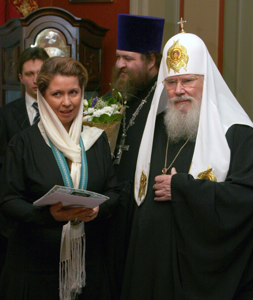 Светлана Медведева получает орден "Преподобной Евфросинии Московской" из рук Патриарха Алексия II. Фото: ИТАР-ТАСС