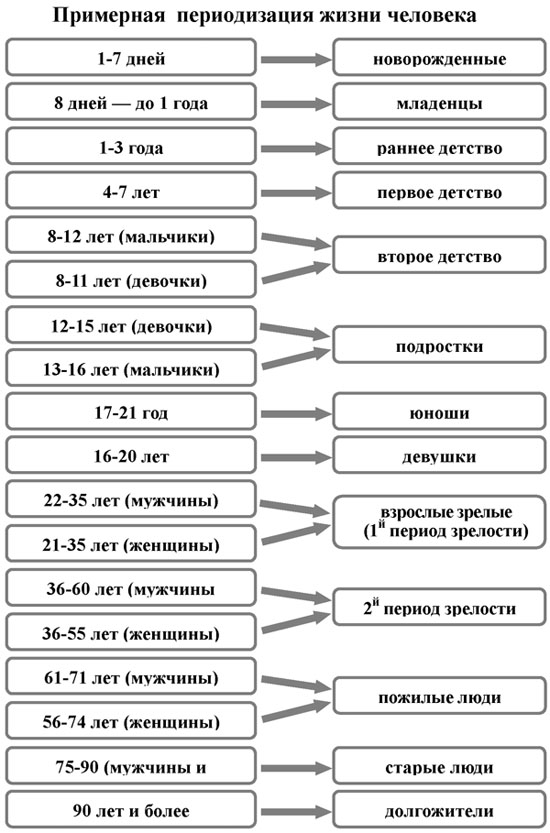 Очевидно, что приведенные возрастные классификации не имеют принципиальной разницы в границах возрастных категорий. Установление границ периодов жизни всегда носит относительно условный характер.